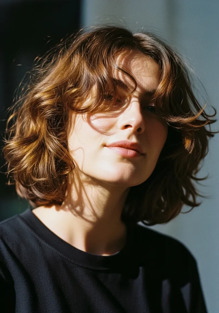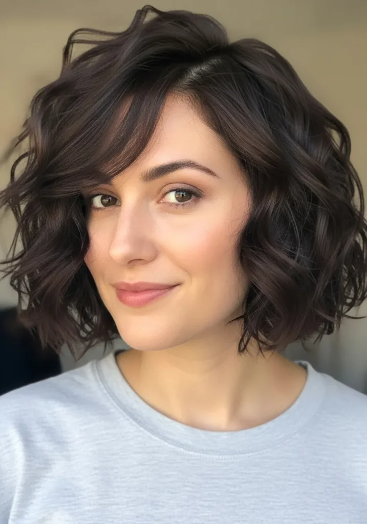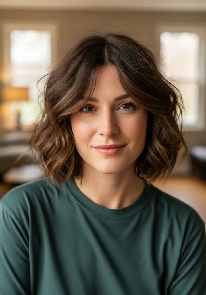 I love how this style makes my face look instantly brighter. The curls bring so much movement that I barely have to do anything in the morning except scrunch a bit and walk out the door. The gentle fringe feels playful without requiring the maintenance of a blunt bang. It is one of those bobs that looks like I put in way more effort than I actually did, which is always a win in my book.