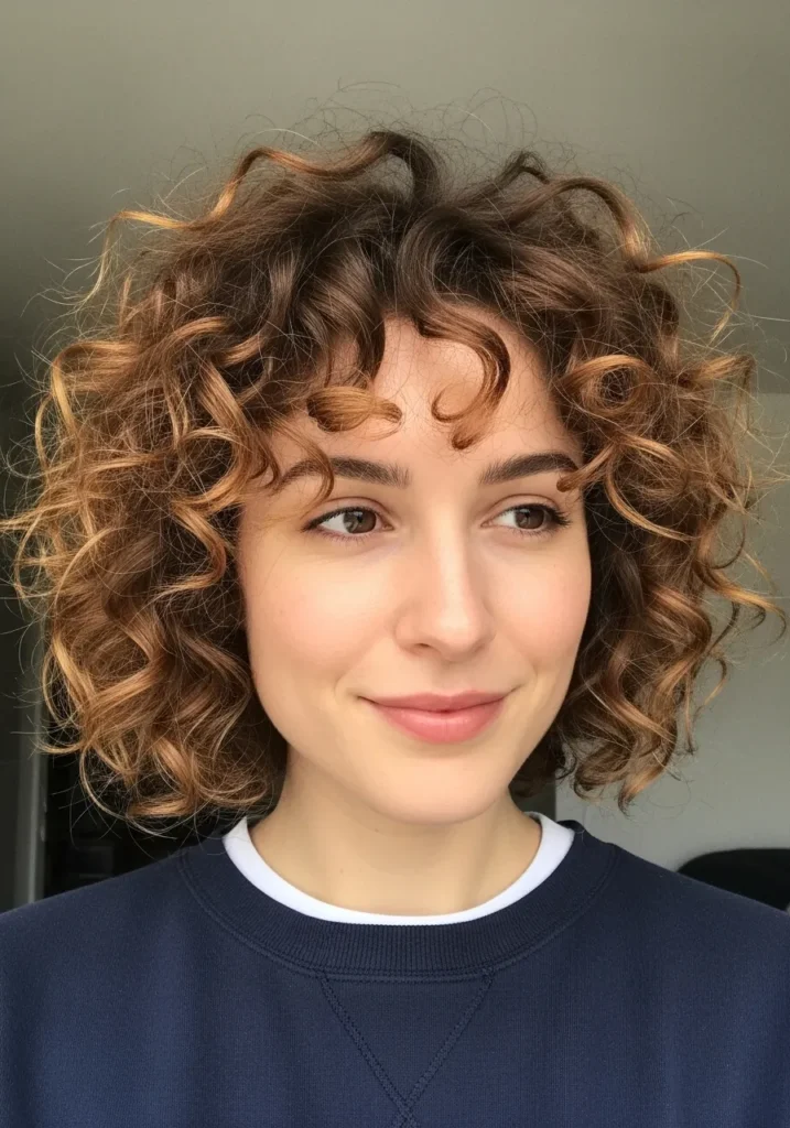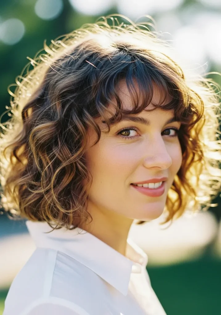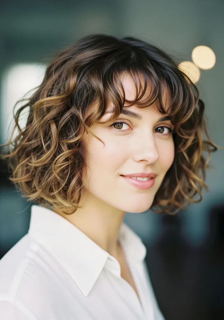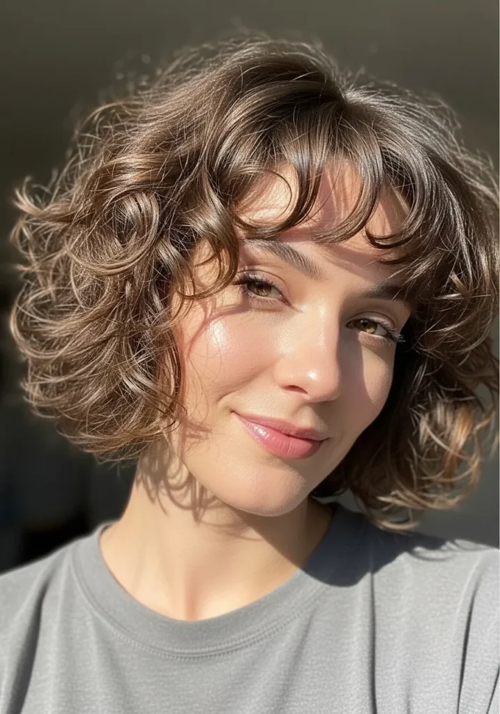 Soft Curly Bob with Wispy Fringe