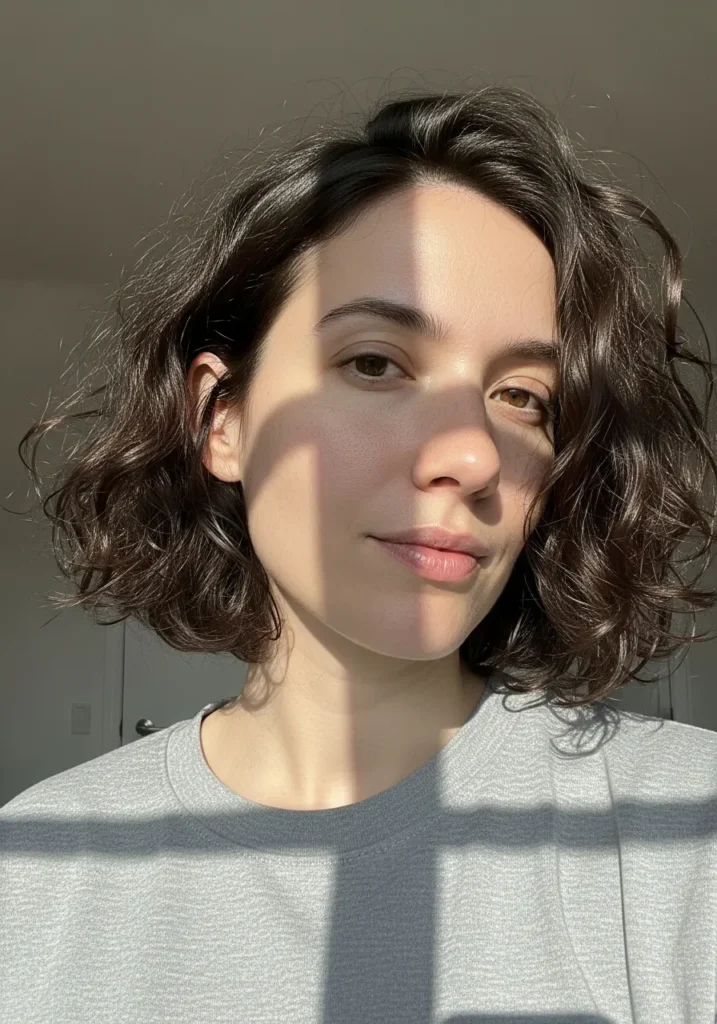 I love this kind of bob because it instantly makes me look like I tried harder than I actually did. The curls have their own personality so I barely need to style them. A quick scrunch and a tiny bit of product and it’s ready to go. It frames the face in such a flattering way and gives that soft confident energy I always want on busy days.
