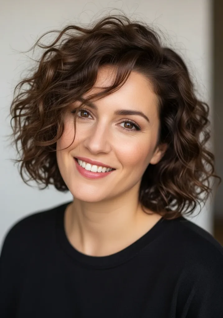 Soft Tousled Brunette Curly Bob