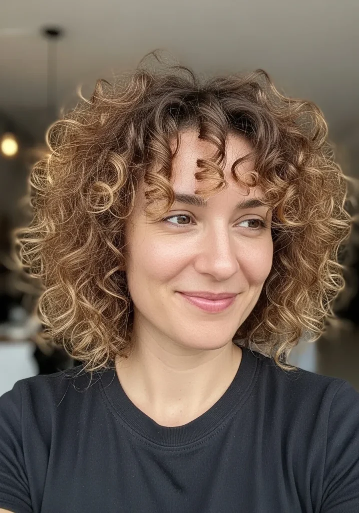 I love this look because it gives me that perfect balance of volume and definition without any fuss. The layers make my curls feel lighter and more playful and the warm highlights add a little glow even on the dullest days. It is one of those styles that looks put together with almost no styling which makes my mornings feel instantly easier.