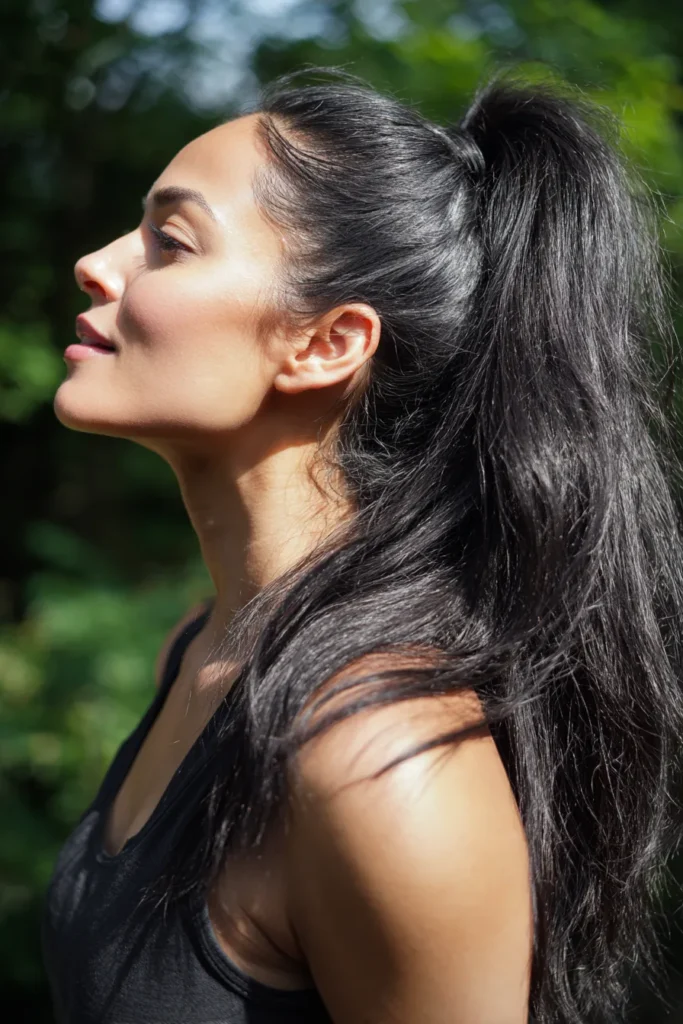 What I love about this style is that it celebrates the fullness of thick hair rather than hiding it, creating a truly spectacular pony. The relaxed vibe is super flattering and gives off effortless ‘I woke up like this’ energy that looks intentional and stylish. It is a fantastic way to quickly get long, heavy hair out of your face while still looking gorgeous.