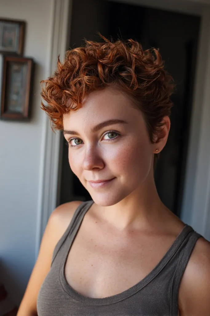 Spirited Auburn Pixie with Defined Curls
