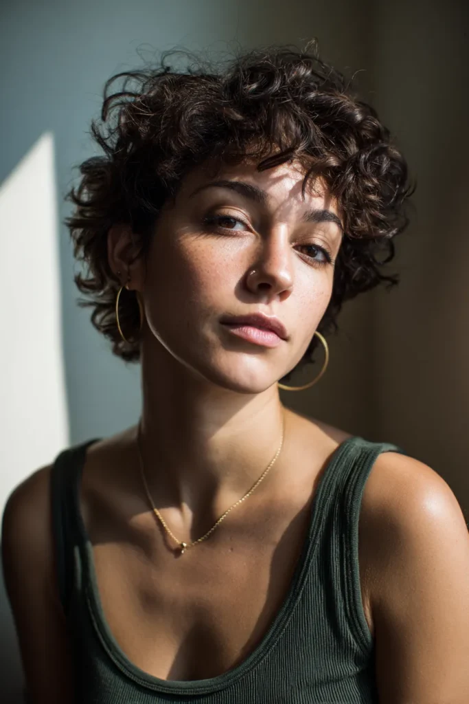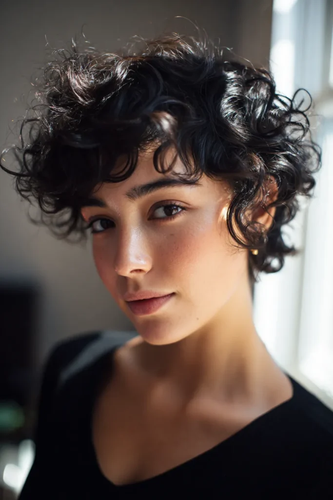 If you are craving a style that is both edgy and adorable, this cropped look is a total winner. It works so well because it opens up the face and puts all the focus on your bone structure and eyes. I find it so refreshing to have a hairstyle that requires almost zero effort beyond a tiny bit of curl cream to keep things polished. It is the ultimate choice for busy mornings when you want to look chic and put together in under two minutes flat.