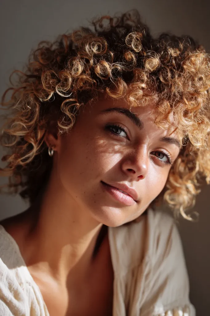 Soft highlights can make curls look more defined and lively. They catch the light beautifully and add movement to shorter styles.