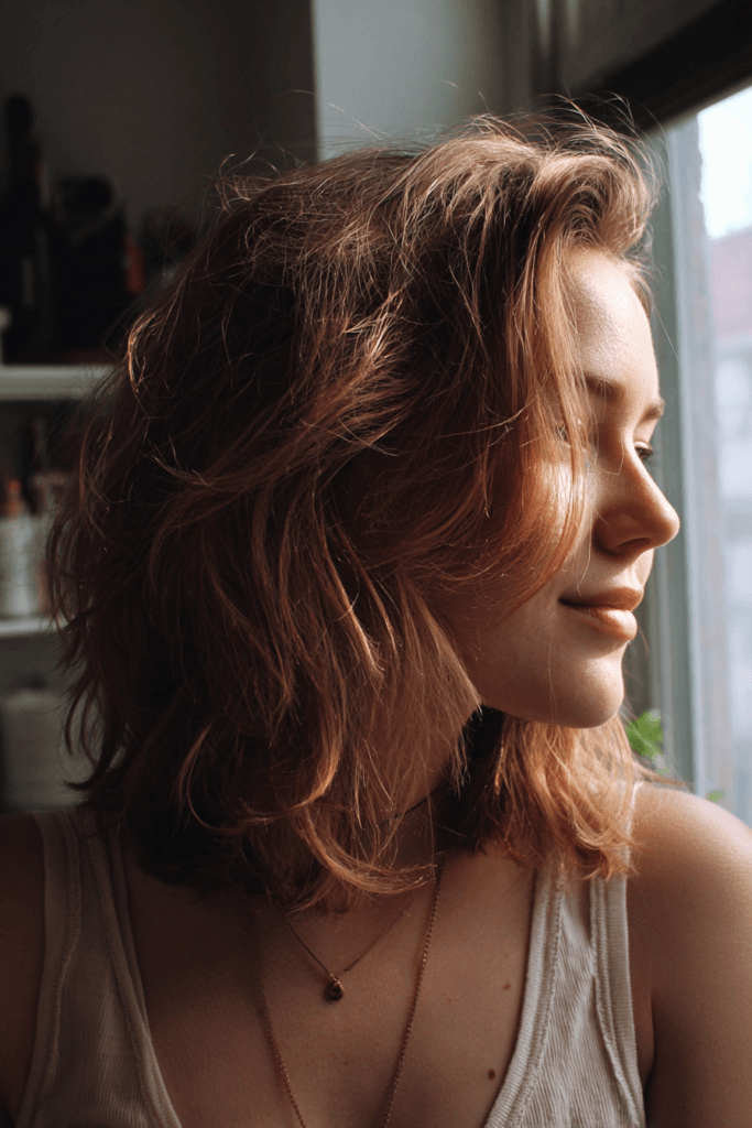 If you want something low maintenance, go for a lived-in color that grows out naturally. This keeps your hair looking fresh without constant salon visits and fits perfectly with the relaxed vibe of this haircut.