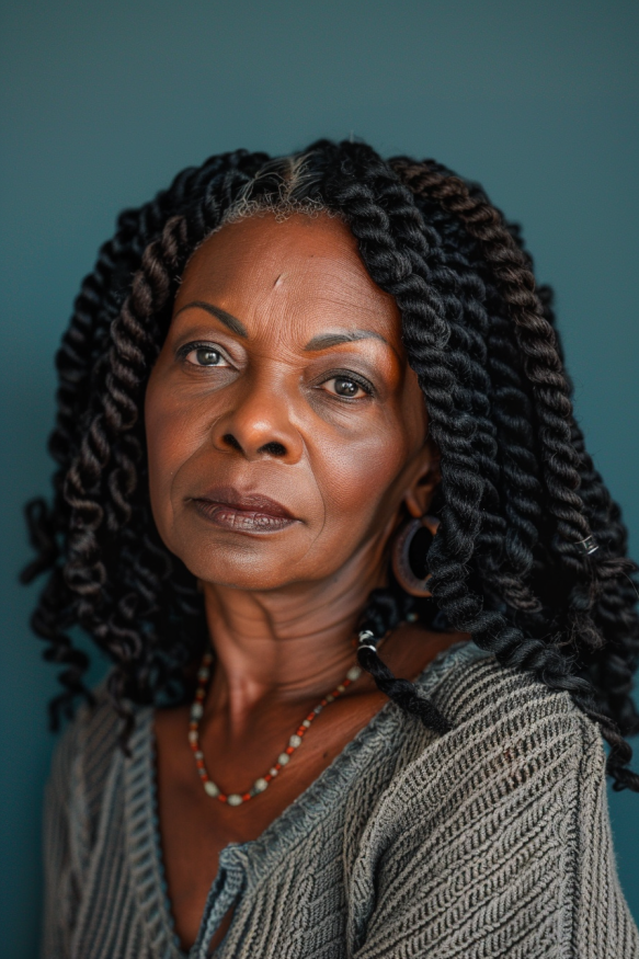 I really like how this hairstyle manages to feel bold but still low-key. The middle part keeps things balanced, and the thickness of each twist adds a nice fullness without looking too heavy. I’d pick this style if I wanted something that feels youthful and fun but still completely age-appropriate. It’s one of those looks that works just as well for a weekend get-together as it does for a dinner out.