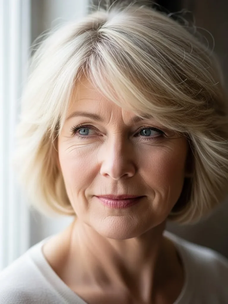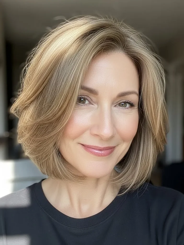 A style like this always lifts my mood because it feels so light and elegant. The feathered layers give my hair movement without any effort and the bright blonde tones make my complexion look instantly refreshed. It is one of those bobs that feels polished even on my simplest days.