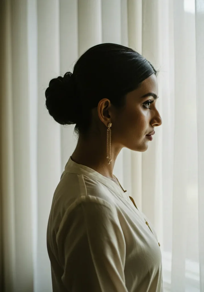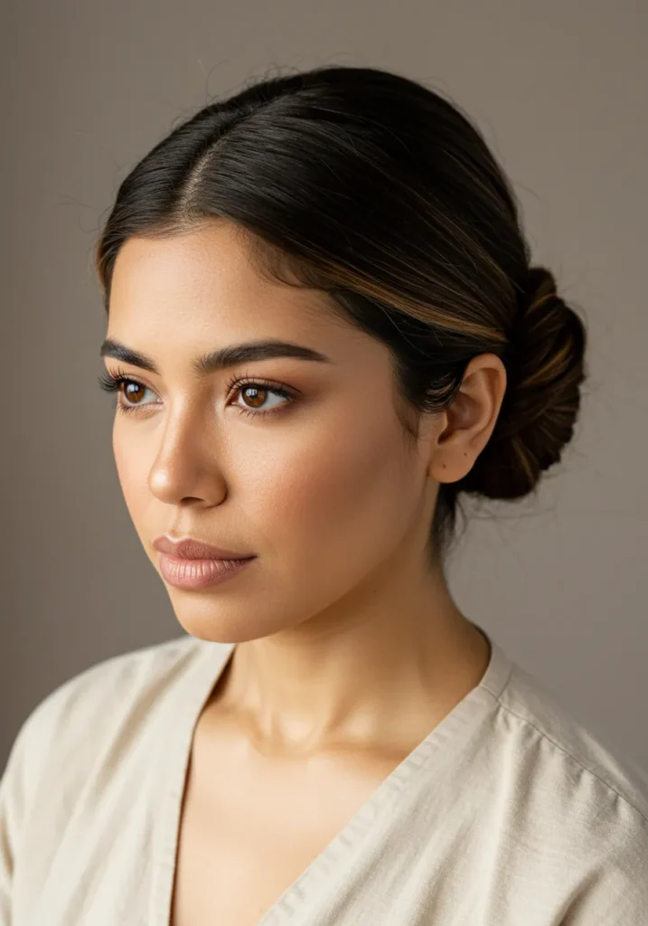 I love this bun because it’s the definition of quiet elegance. It’s one of those styles that instantly gives off calm confidence and pairs beautifully with everything from cozy knits to formal blouses.