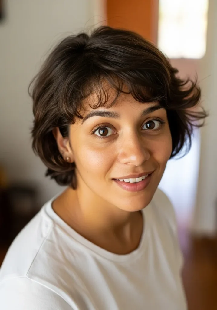 I really enjoy how carefree this haircut feels. It has just the right mix of structure and softness which makes it perfect for anyone who wants curls that look cute without needing too much styling. It is a short style that still feels feminine and full of personality.