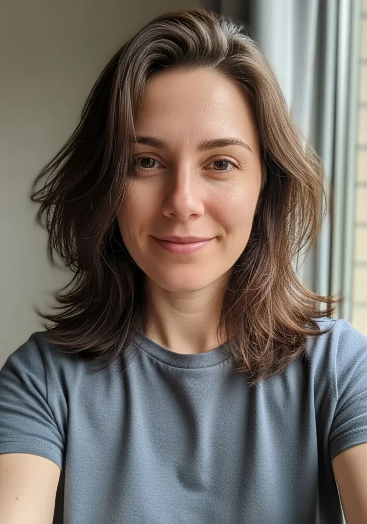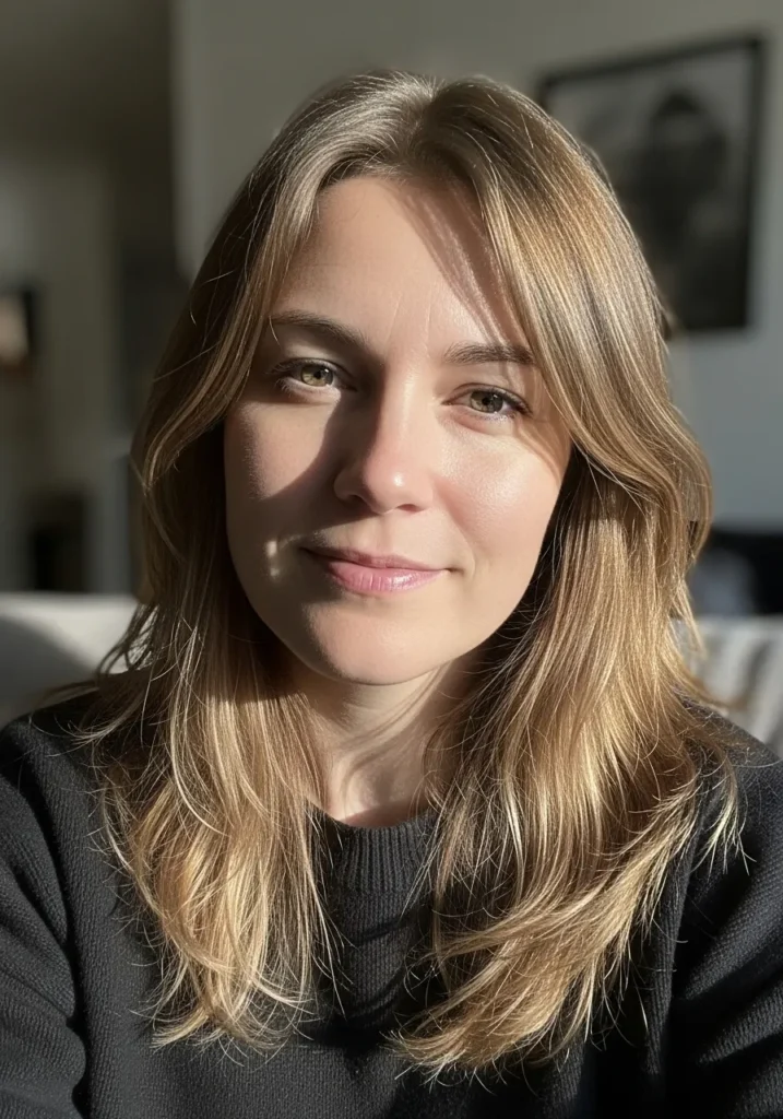 I like how this shape frames an oval face without overwhelming it. The feathering adds little waves of movement that make the cut feel relaxed but still refined. It works beautifully on busy days when I want a simple style that still feels polished.