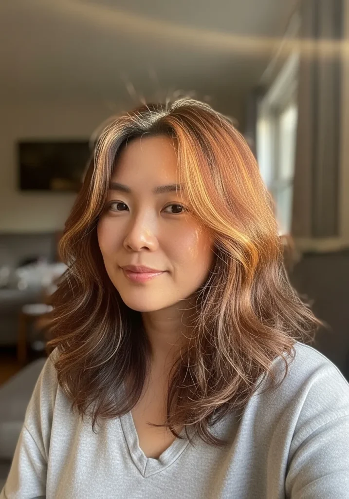 I always feel polished with this kind of style because the feathering keeps the waves light while the color adds a pretty glow. It works on days when I want something simple that still looks put together.