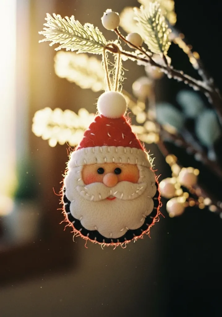 Felt Santa Ornament With a Cheerful Glow