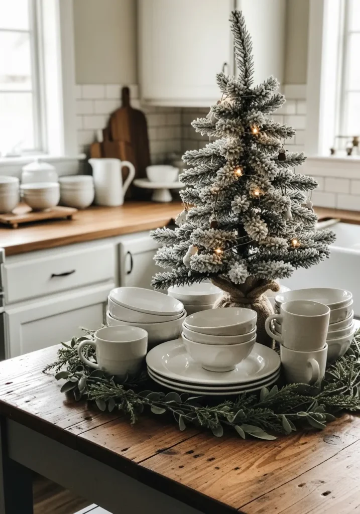 I honestly can’t get over how charming this setup is. There’s something so effortless about decorating your kitchen with a mini Christmas tree that feels both festive and functional. It’s like your morning coffee suddenly tastes a bit more magical when it’s brewed beside a snow-kissed tree. I’d absolutely recreate this in my own home—it’s that perfect mix of cozy and Christmas-morning joy.