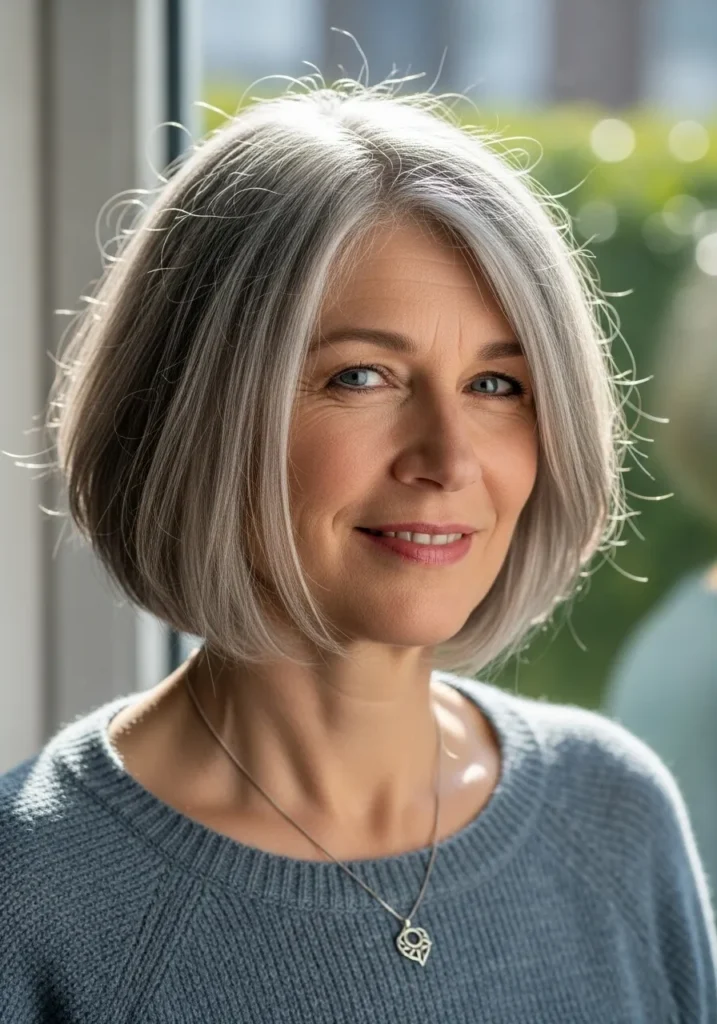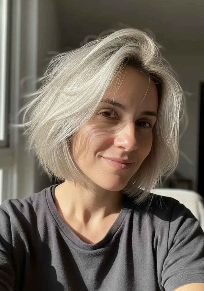 This hairstyle feels like the perfect mix of youthful energy and sophisticated maturity. It’s flattering for women of all ages, and I find that the silver tones really pop in the soft sunlight. It’s the kind of hairstyle that makes a statement while still being understated.