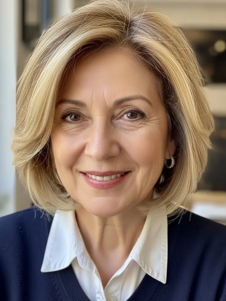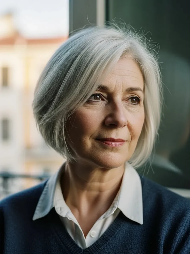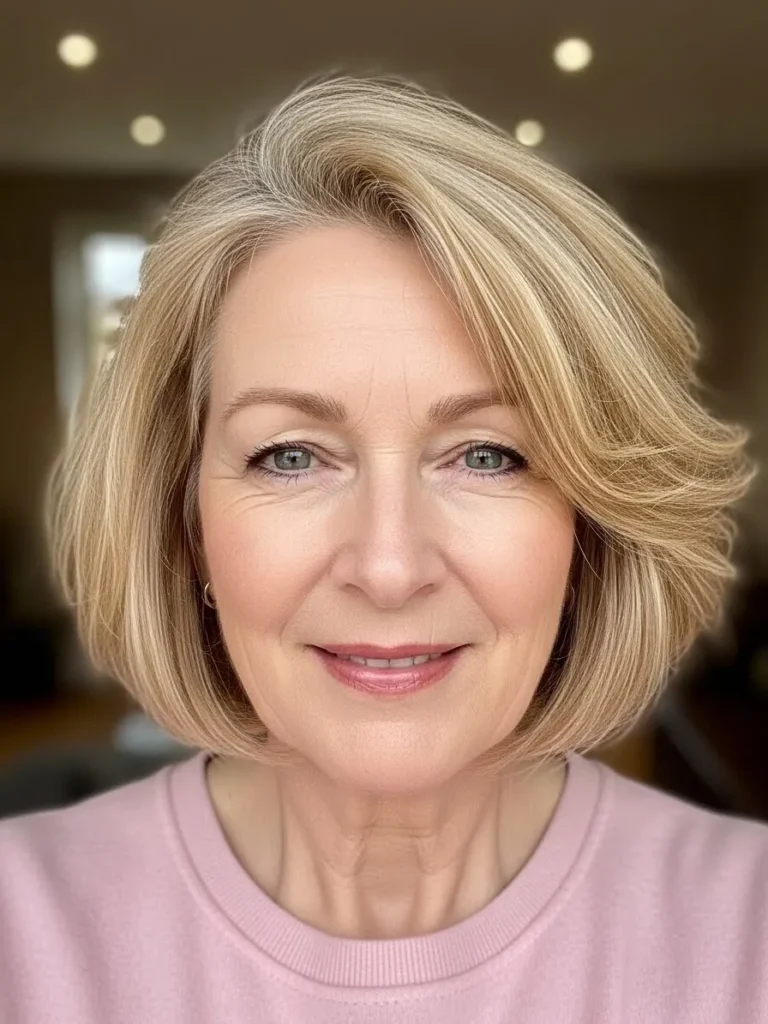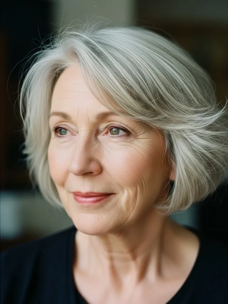I really enjoy how this style keeps everything clean while still having that hint of playfulness in the movement. The softness makes it easy to wear and the gentle sweep feels so flattering on mature features. It gives a polished look without losing that light airy quality.