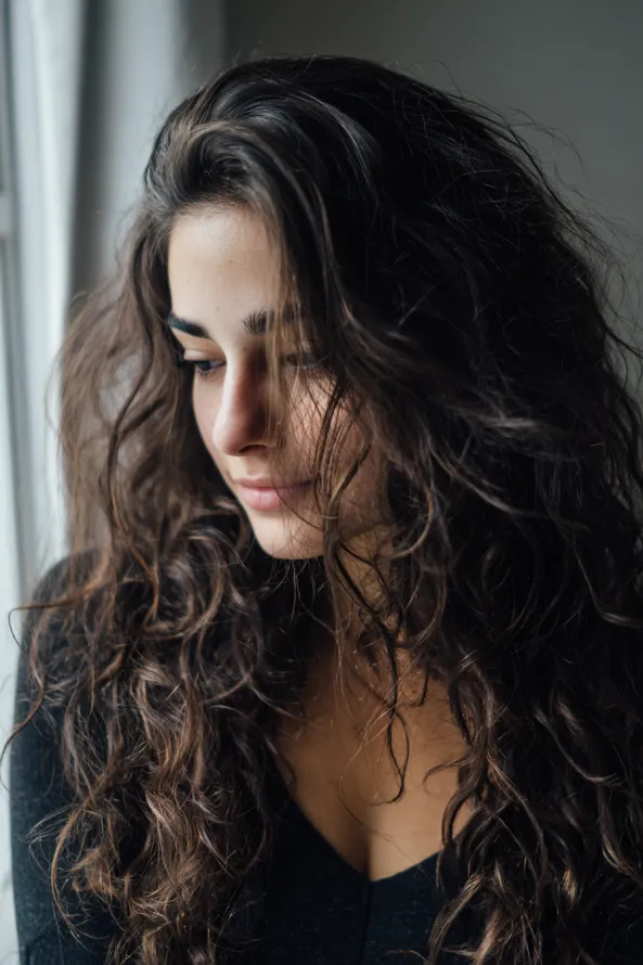 Hydration is everything when it comes to long curls. Use a lightweight curl cream or leave in conditioner on damp hair, then gently scrunch to encourage your natural pattern.