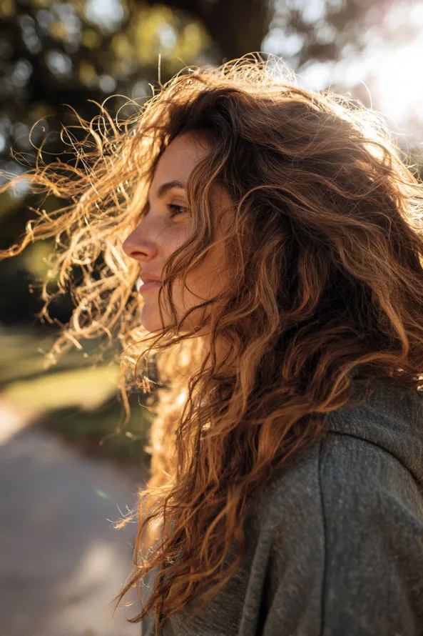 I love how this kind of lighting makes curls look even more alive and dimensional. It gives that fresh outdoor glow that makes the whole style feel carefree and beautiful.