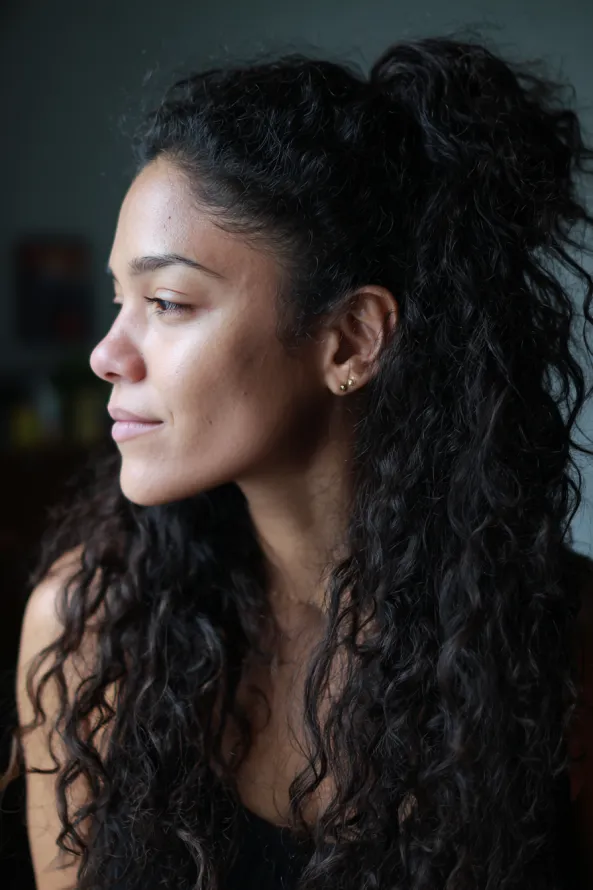 High Curly Ponytail With Natural Texture