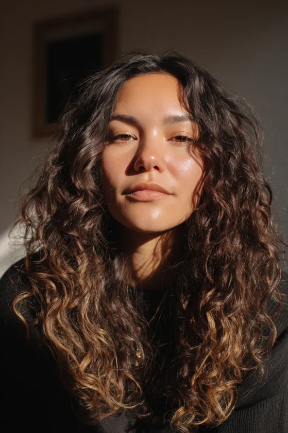 Glossy Defined Curls With Warm Highlights