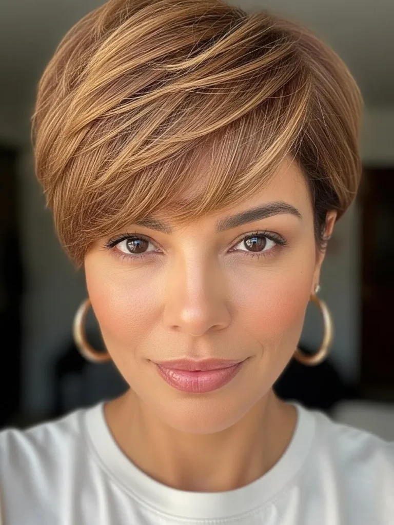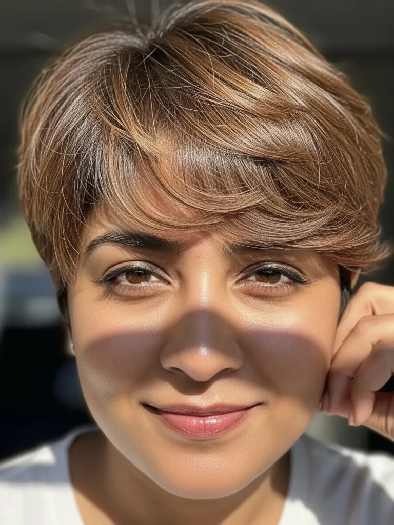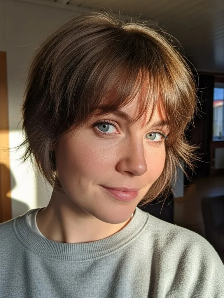 Tousled Fringe Pixie Bob With Sunlit Waves