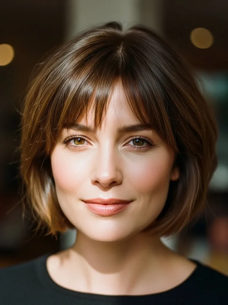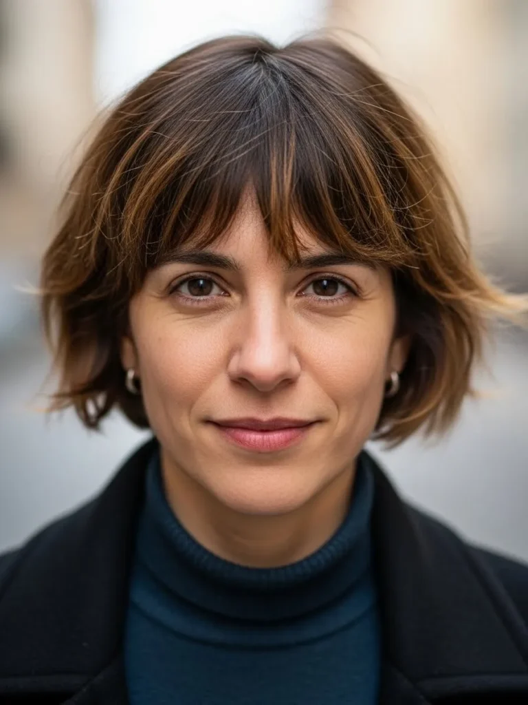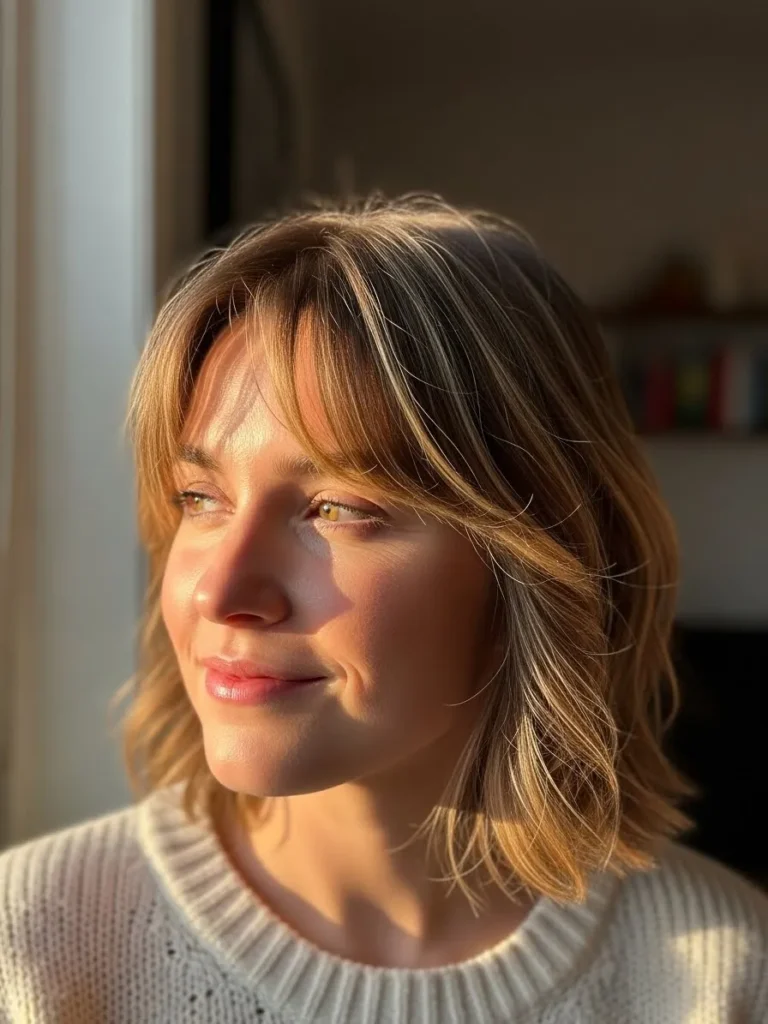 I love how flattering this type of fringe feels on days when I want something chic but still easy. It gives my face a warm open look and the shape always makes me feel fresh without needing much styling at all. It is the kind of haircut that behaves even when I am rushing out the door.