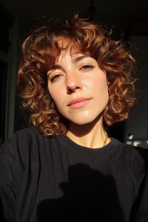 Sunlit Curly Bob With Soft Fringe