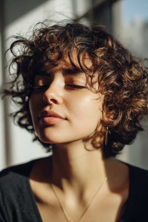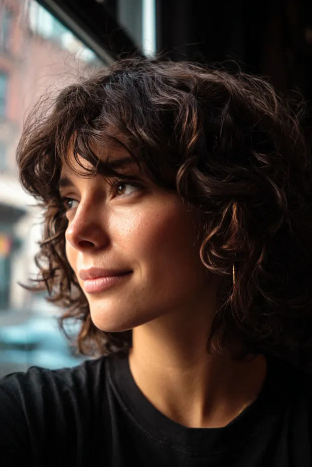 I have always had a soft spot for short curly hair with bangs because it feels playful, fresh, and a little bit bold all at once.