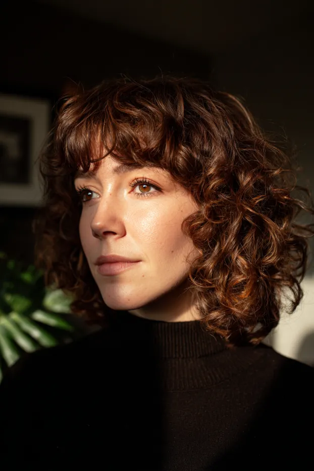 Soft Curly Bob With Wispy Bangs