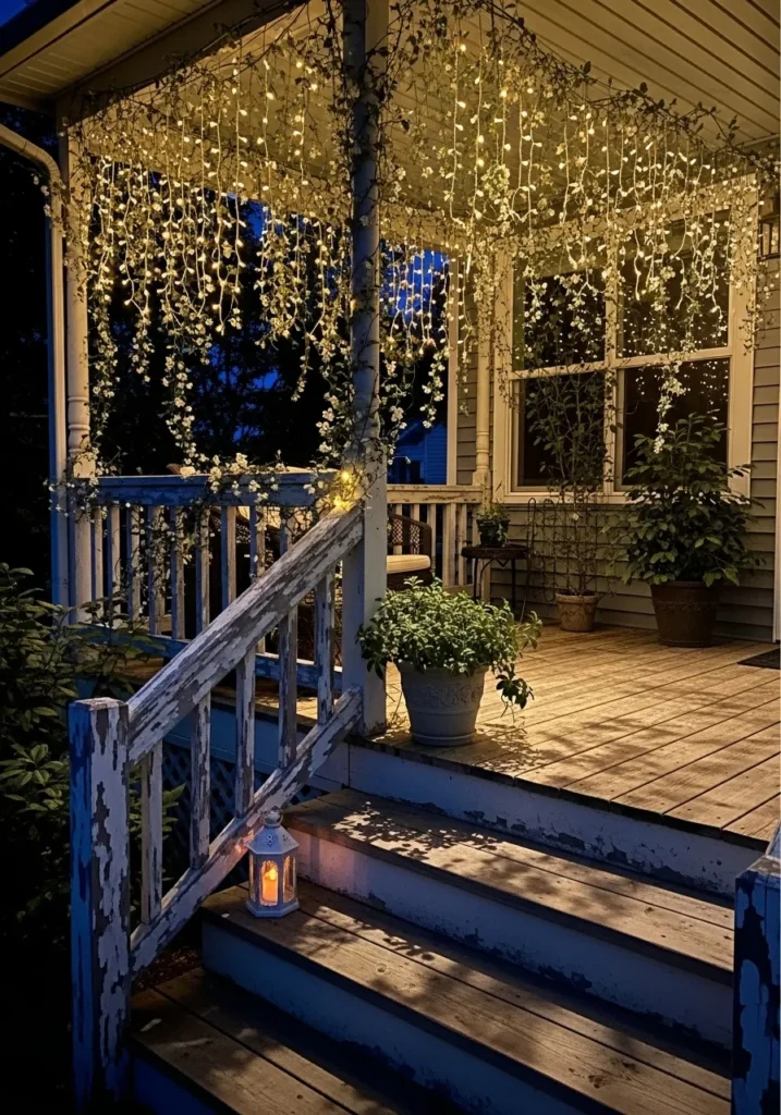 Charming Porch Glow with Cascading Lights