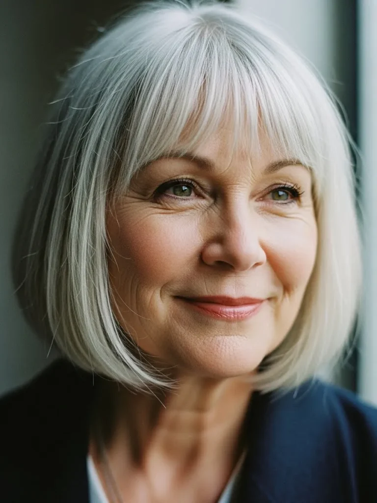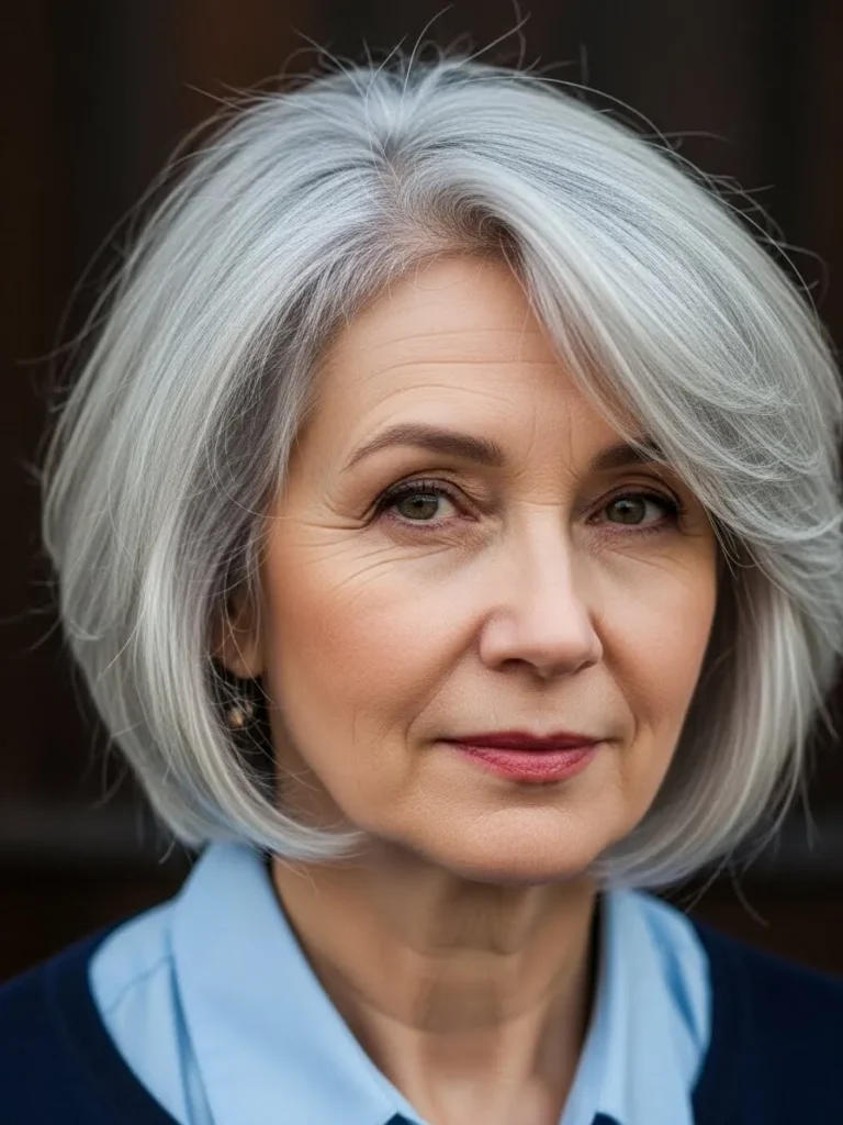 I love this style because it makes my hair feel polished without requiring much effort. The layers fall into place on their own, and the silver tone looks fresh and luminous in every kind of light. It is one of those bobs that instantly brightens the face and makes you feel like you woke up effortlessly put together.