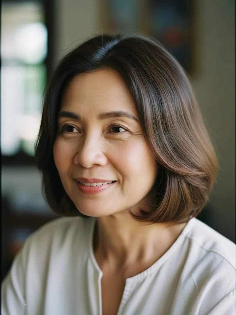 I have always admired how a layered bob with light texture can make hair feel soft and graceful at any age.