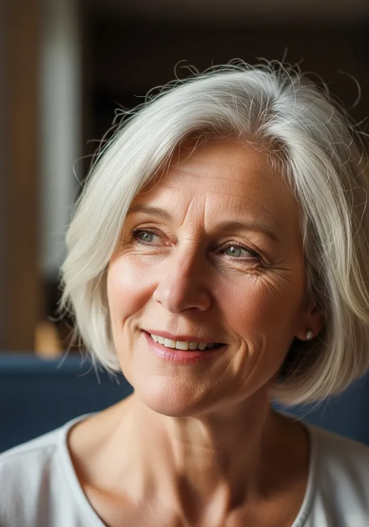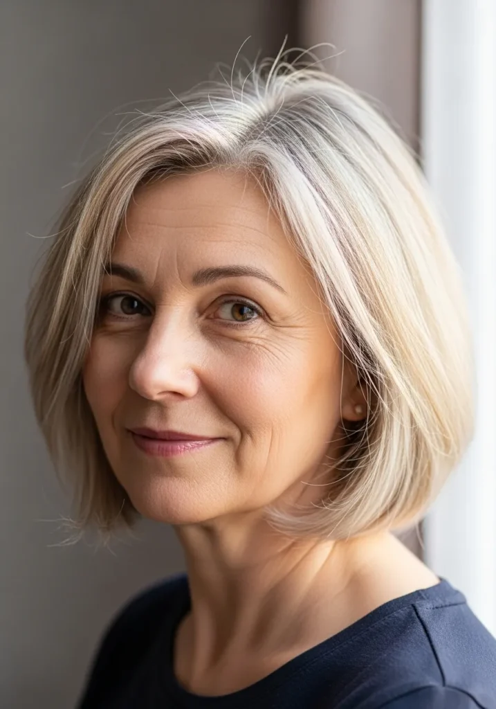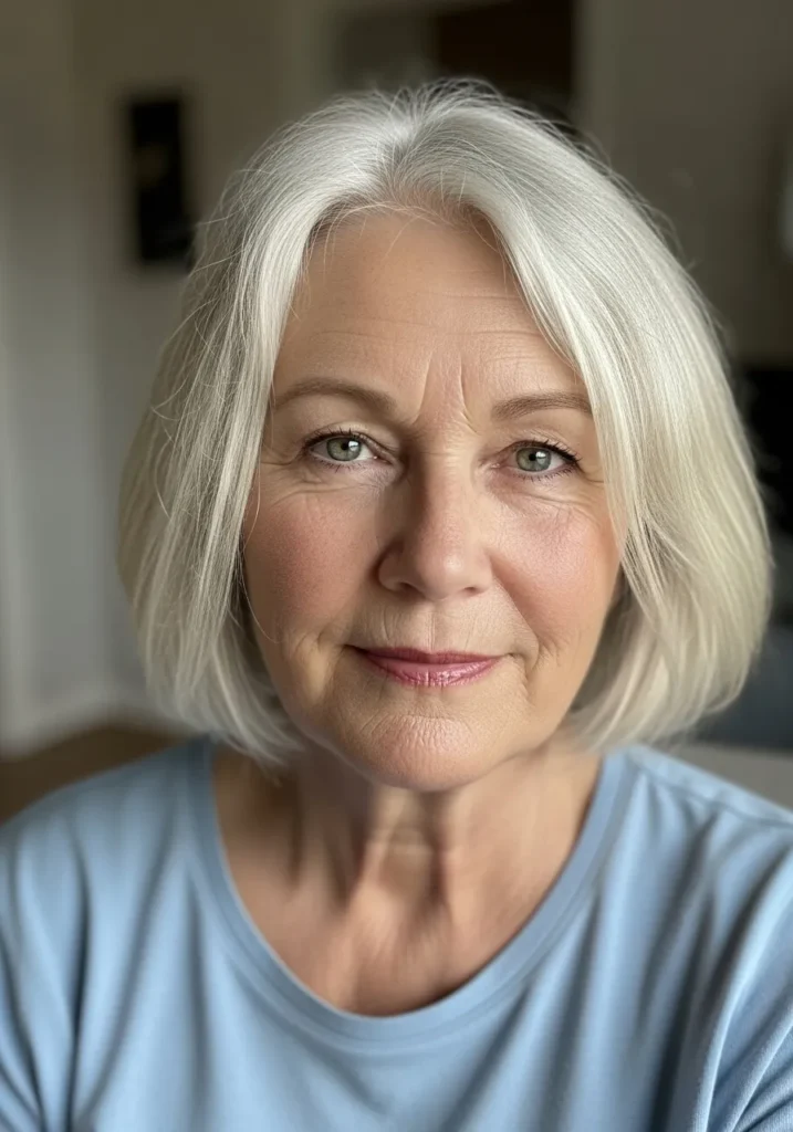 I always think a face framing bob makes everything feel softer. This one brightens my features and gives me that gentle lift that feels youthful without trying too hard. It is simple but so flattering.