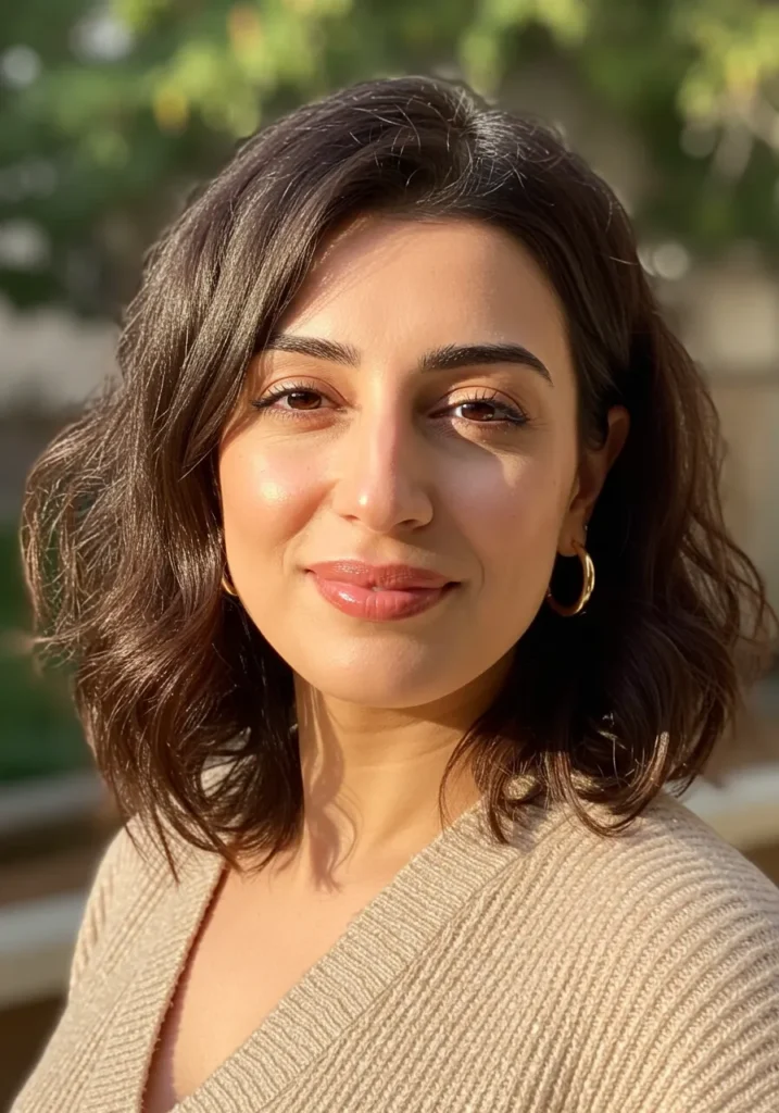 I always think this kind of soft, bouncy curl brings instant confidence. It’s glamorous without being overdone, and the caramel highlights make your skin glow. I’d wear this for any cozy dinner gathering — it’s the kind of hair that photographs beautifully from every angle.
