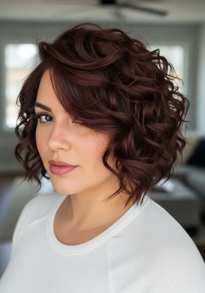 Deep Burgundy Curls With a Soft Inverted Shape
