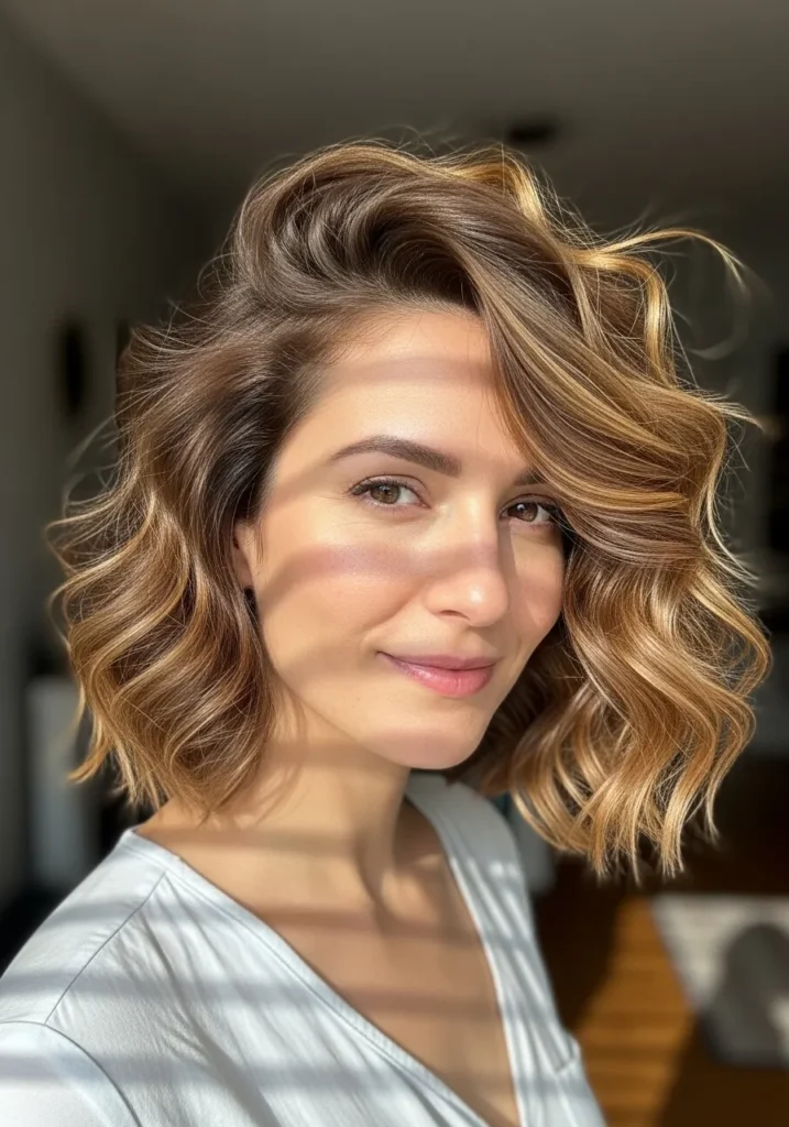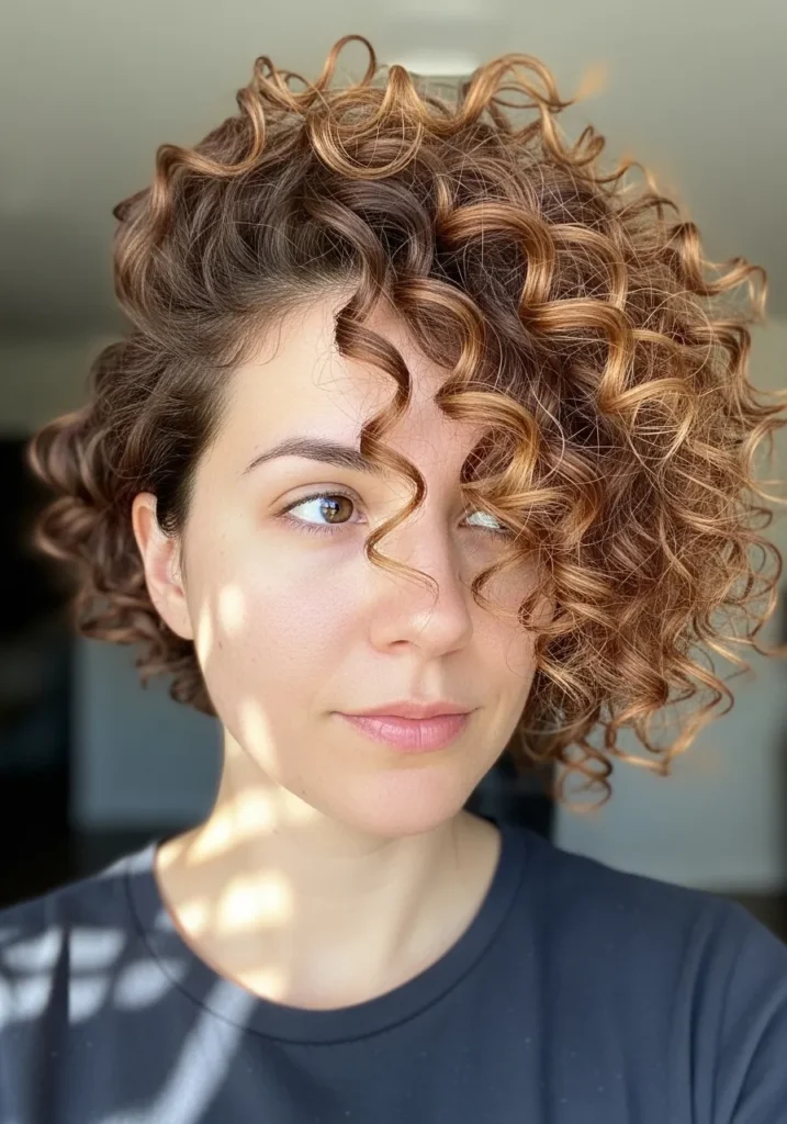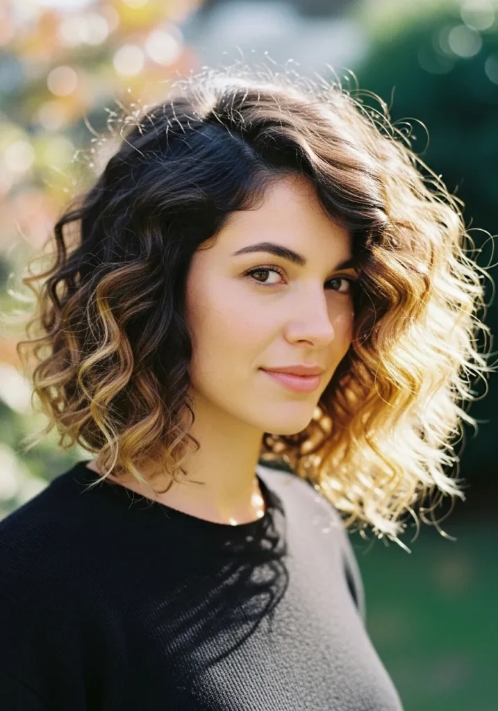 Soft Curly Bob with Sunlit Highlights