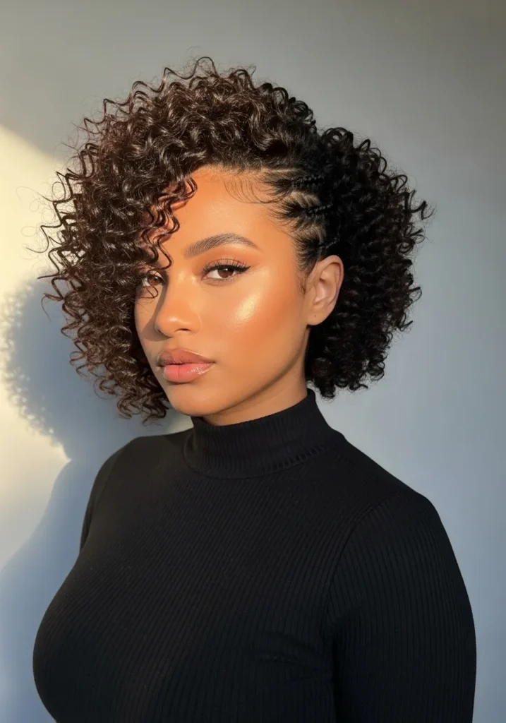 Curly Bob with Side Cornrow Detail