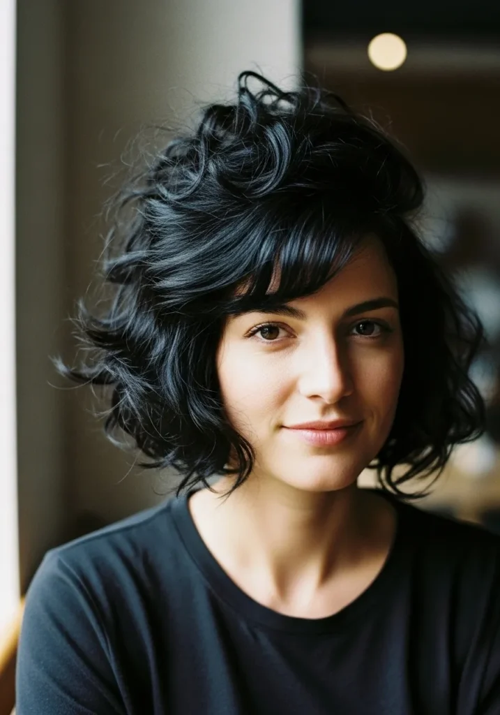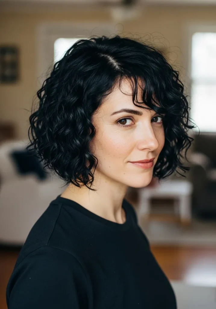 Tousled Inverted Curly Bob With Soft Fringe