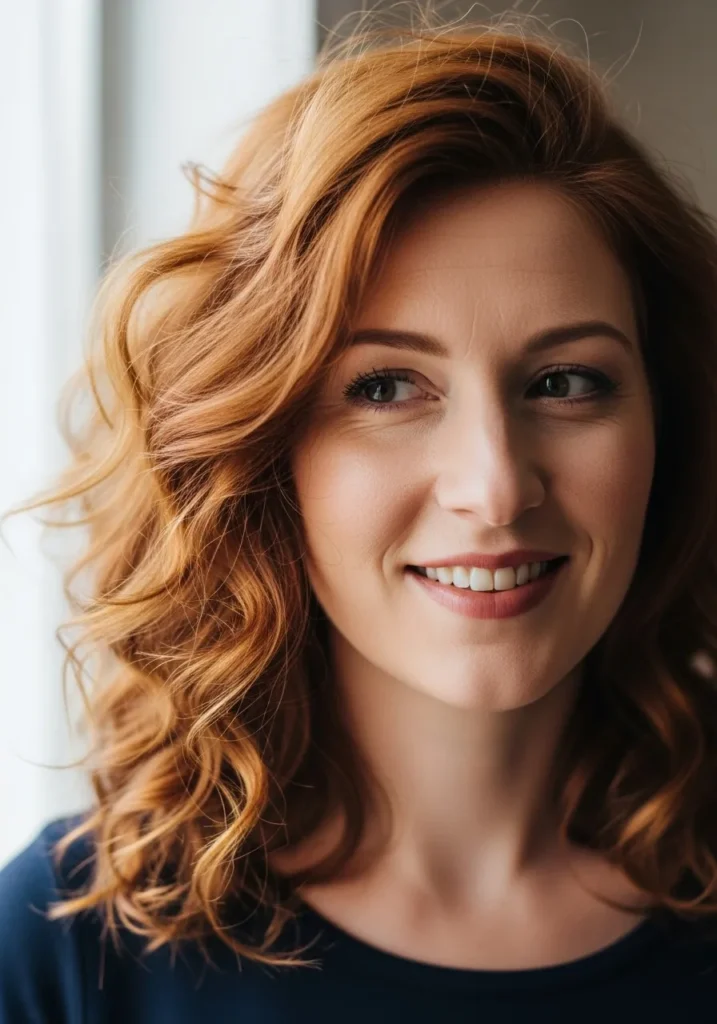 I love this look because it gives me that perfect mix of volume and softness without feeling high maintenance. The curls frame the face in such a flattering way and make my hair feel fuller even on days when it usually falls flat. The warm copper shade adds a little boost of brightness that always makes me feel put together. It is one of those styles that makes me feel cute without trying too hard.