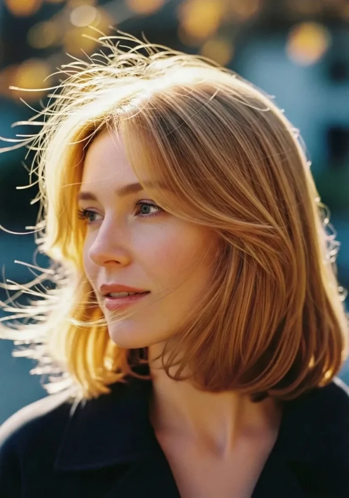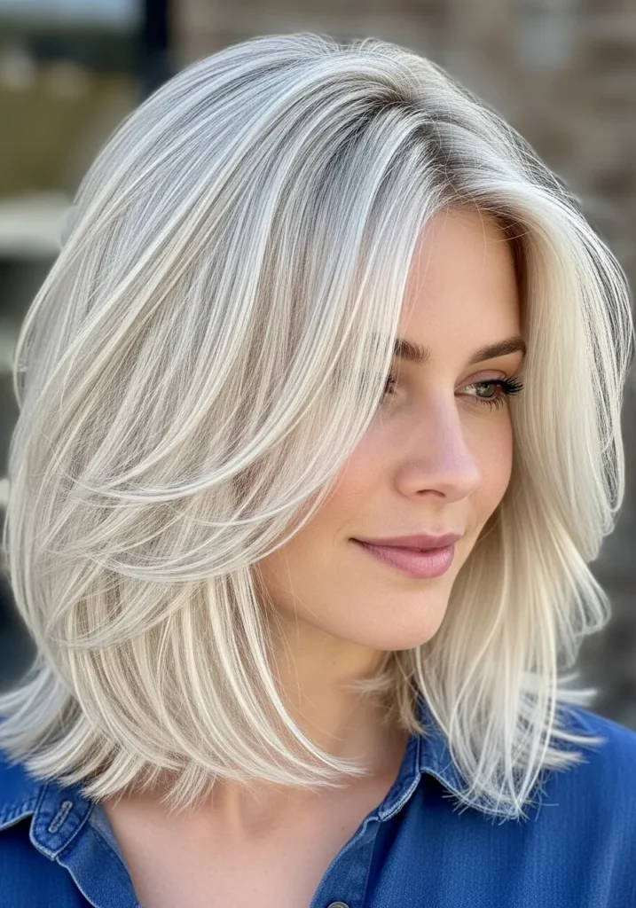 I love this kind of cut because it makes my fine hair look so much fuller with almost no effort. The layers do all the lifting for me and the bright shade reflects light in the prettiest way. It feels polished but never stiff which is exactly the balance I want when my hair needs a boost.