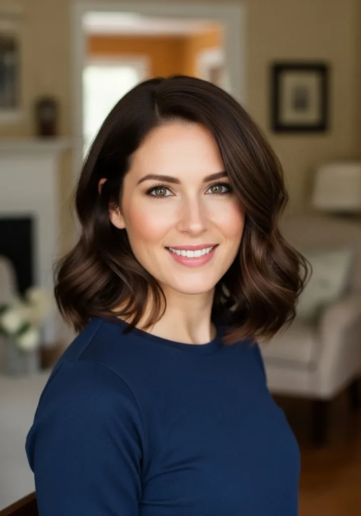 I love this kind of lob because it feels polished without trying too hard. The face-framing pieces instantly brighten my features and the soft volume makes me feel confident without spending forever styling. It is the kind of hairstyle that lets me walk into a party looking like I put real thought into my look even if I only spent a few minutes with my curling wand.