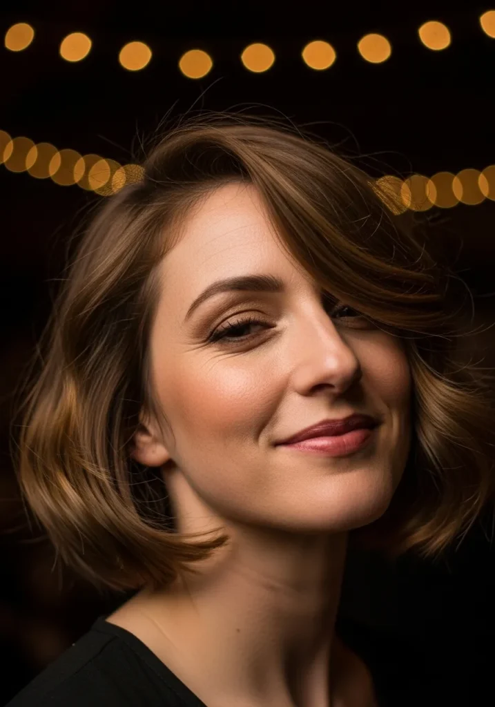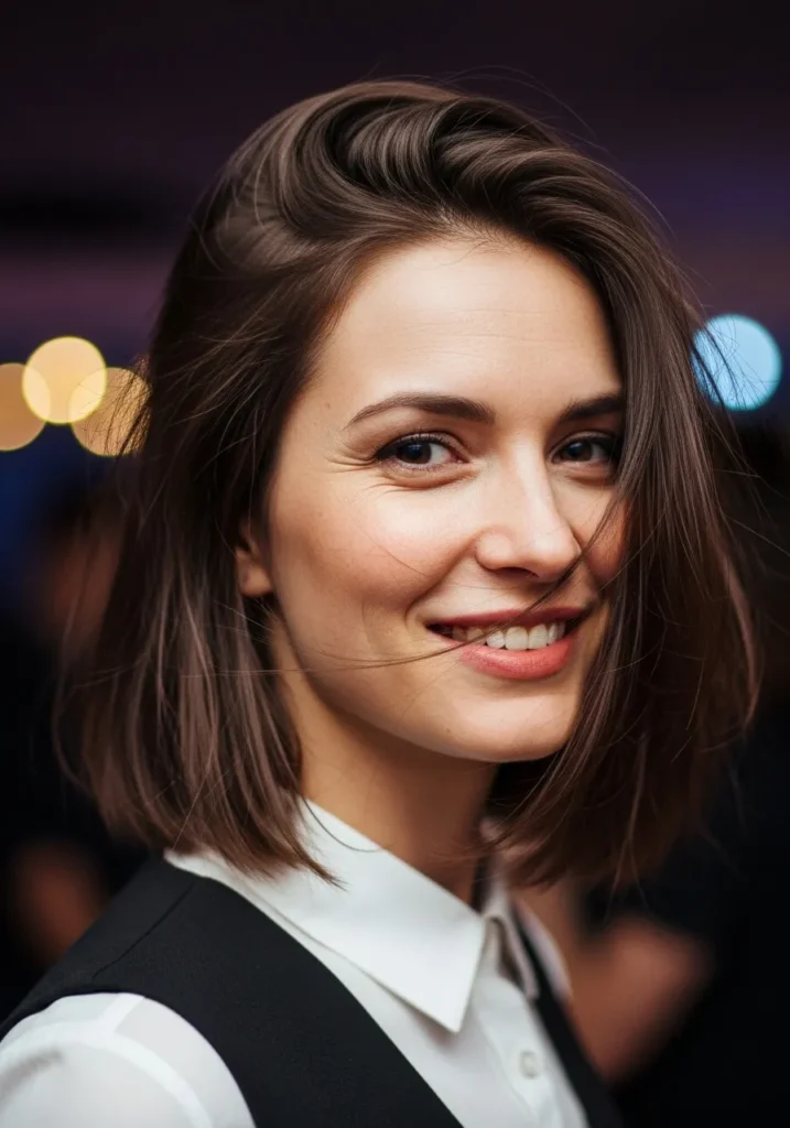 I love this look because it instantly makes me feel put together even on nights when I barely had time to get ready. The sleek texture frames the face in such a flattering way and the length is that perfect sweet spot that still feels playful while looking refined. It is one of those hairstyles that makes me feel like I tried without actually having to try. Perfect for a party night when you want effortless confidence showing up with you.