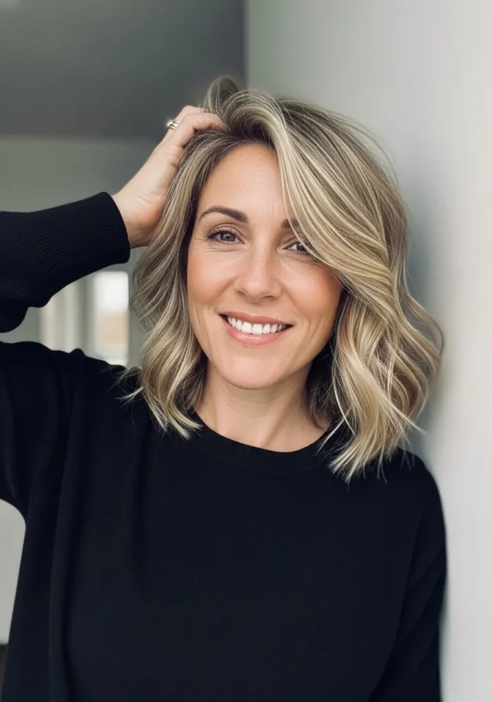 I love this kind of lob because it instantly makes me feel put together without demanding a full glam routine. The soft waves frame the face in the sweetest way, and the mixed blonde tones catch the light beautifully in photos. It’s one of those styles that feels flirty, easy, and totally wearable, which is honestly my favorite combo for any night out.