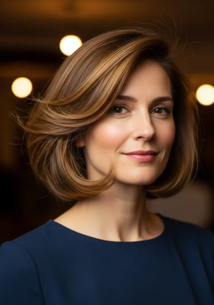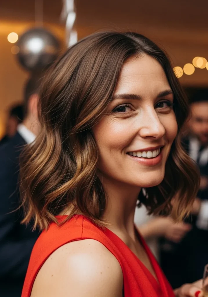 I love this kind of lob because it instantly makes me feel polished but still totally myself. The waves add just enough playfulness for a night out, and the warm tones make my complexion look brighter, which feels like a built-in confidence boost. It’s one of those hairstyles that looks good from every angle and never feels fussy, which is exactly what I want when I’m trying to enjoy a party instead of worrying about my hair.