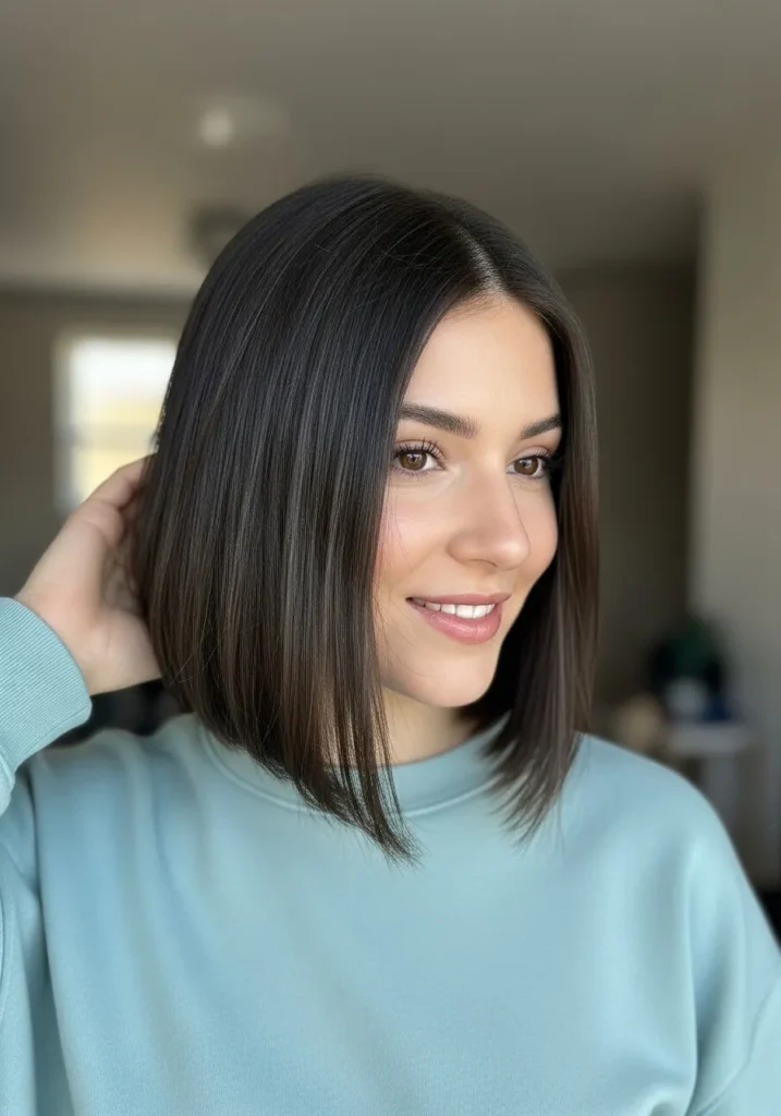 I love this kind of style because it makes me feel instantly put together without trying too hard. The sleek texture frames the face so well and the length feels light and easy but still glamorous. It is one of those lobs that makes you walk a little taller because it looks sharp from every angle.