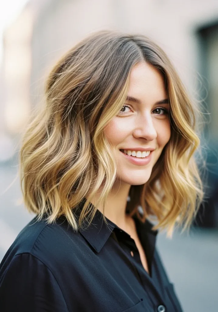 Soft sun-kissed wavy lob