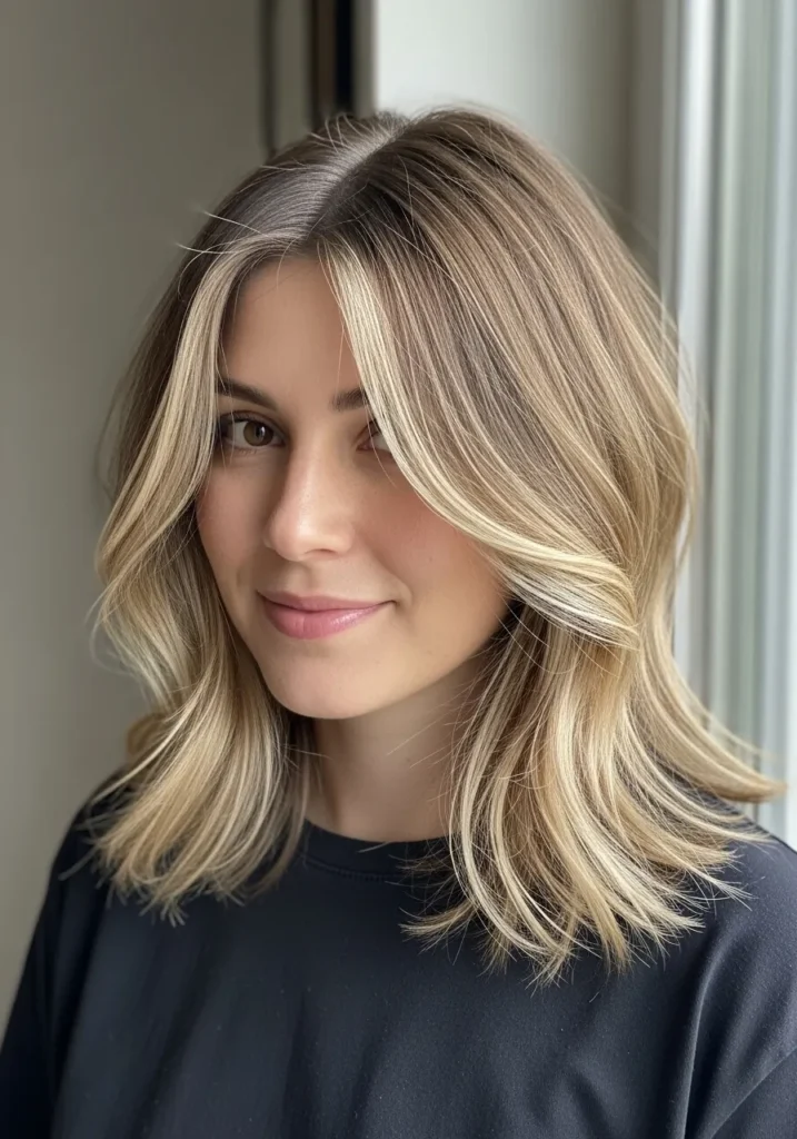 Soft Wavy Lob With Face Framing Highlights