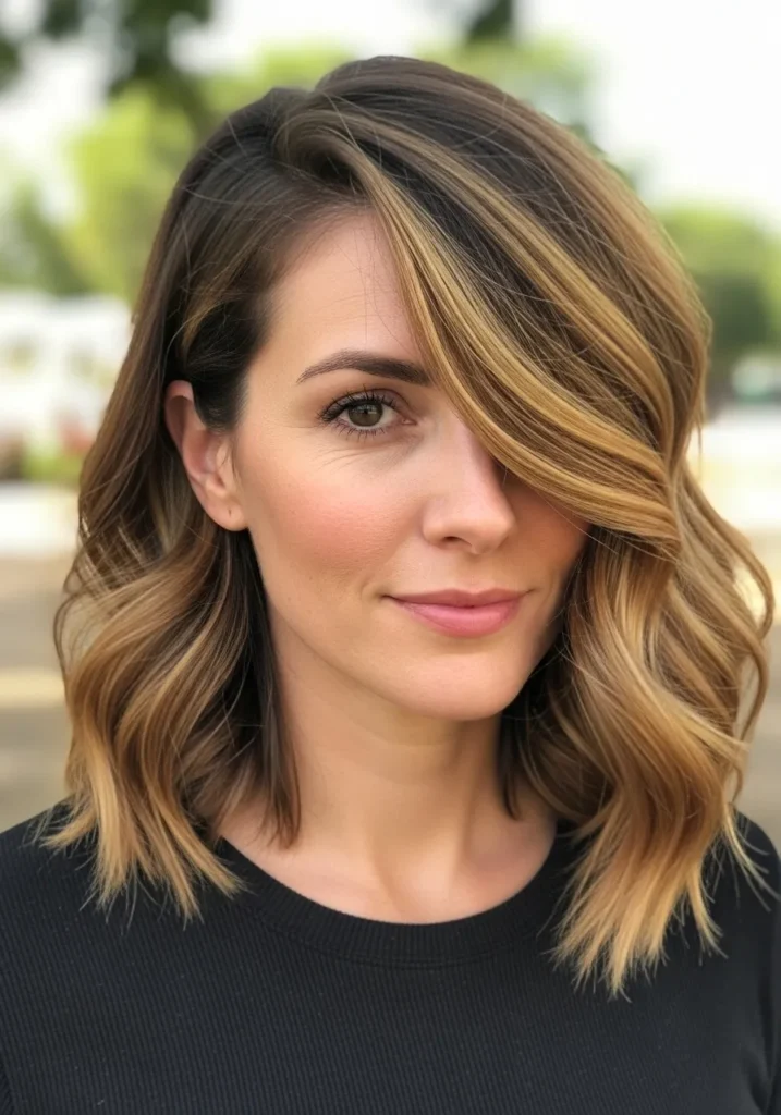 Tousled side part lob