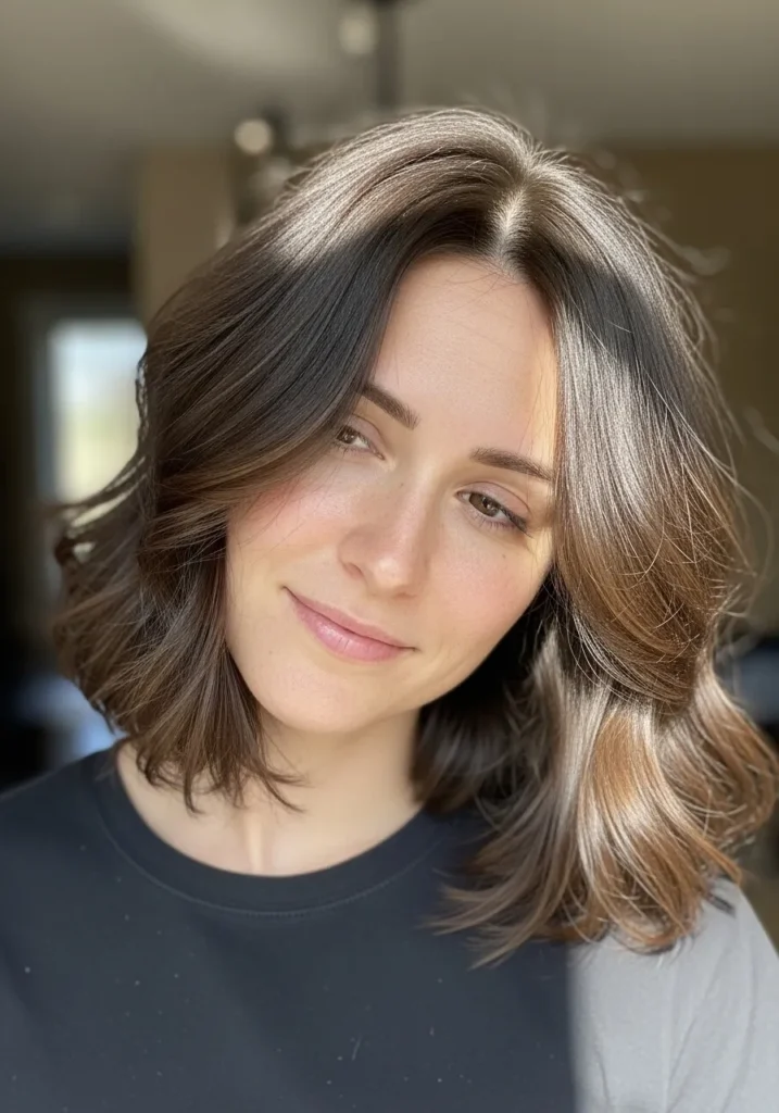 I love how this kind of lob gives my thin hair a natural boost without needing a lot of styling. The soft face framing makes everything feel brighter and more open around my features. It is one of those cuts that makes me feel put together even on the days when I barely touch a brush. The fullness comes from the movement and the color together which is such a win when my hair needs a little help in the volume department.