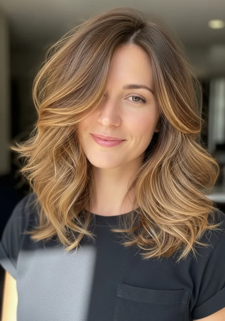 I love this kind of cut for thin hair because it gives me fullness without needing a ton of product. The layers lift everything in such a flattering way and the warm highlights brighten my face even on days when I barely try. It is one of those styles that looks like I spent time on it even when I definitely did not, and honestly that is my favorite kind of hair magic.
